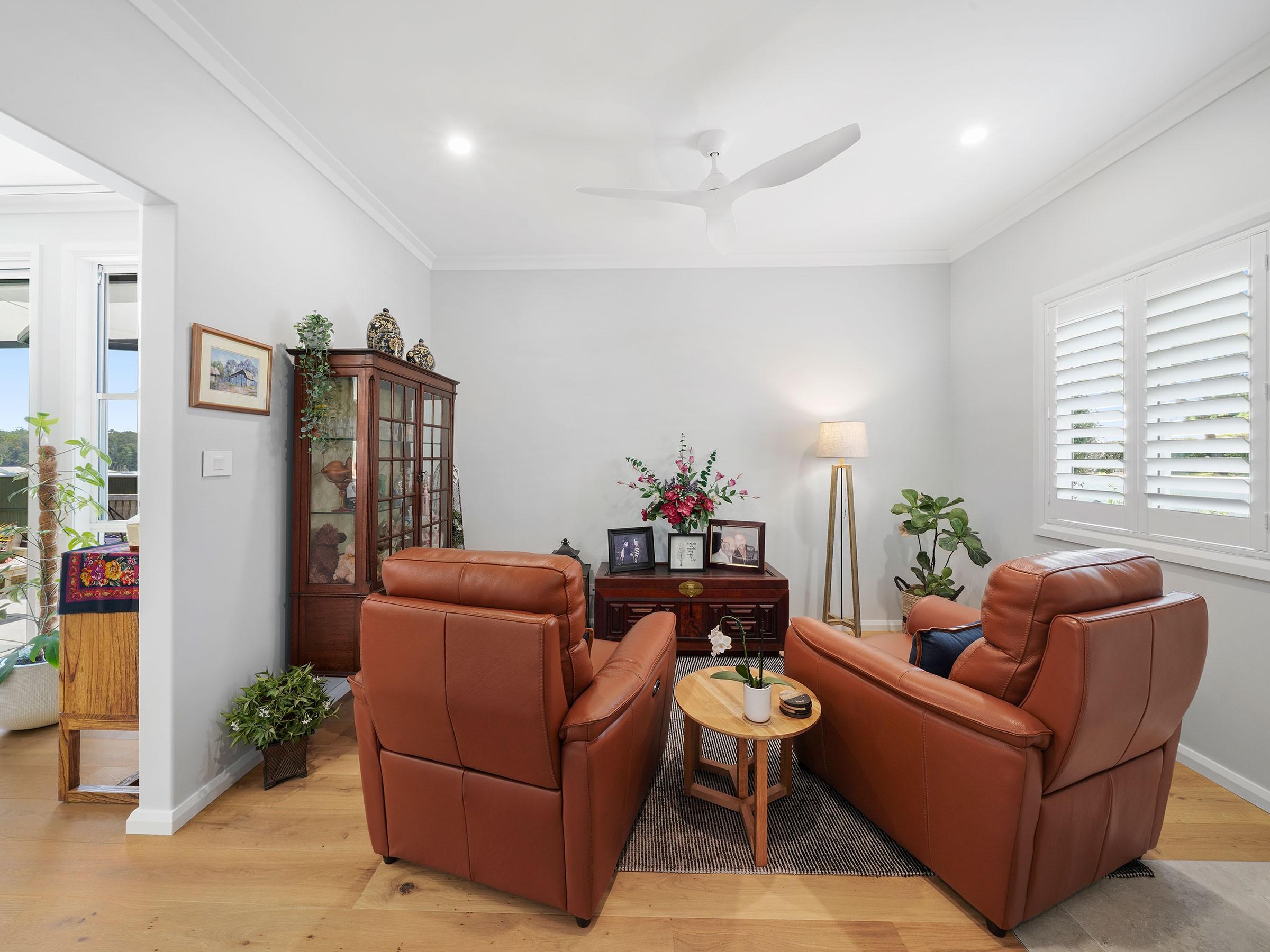 The home comes with generous inclusions such as verishades and tinted glass sliders in the living area and plantation shutters throughout, under vanity sensor lights, fridge plumbing, heated towel rails and ducted air conditioning.