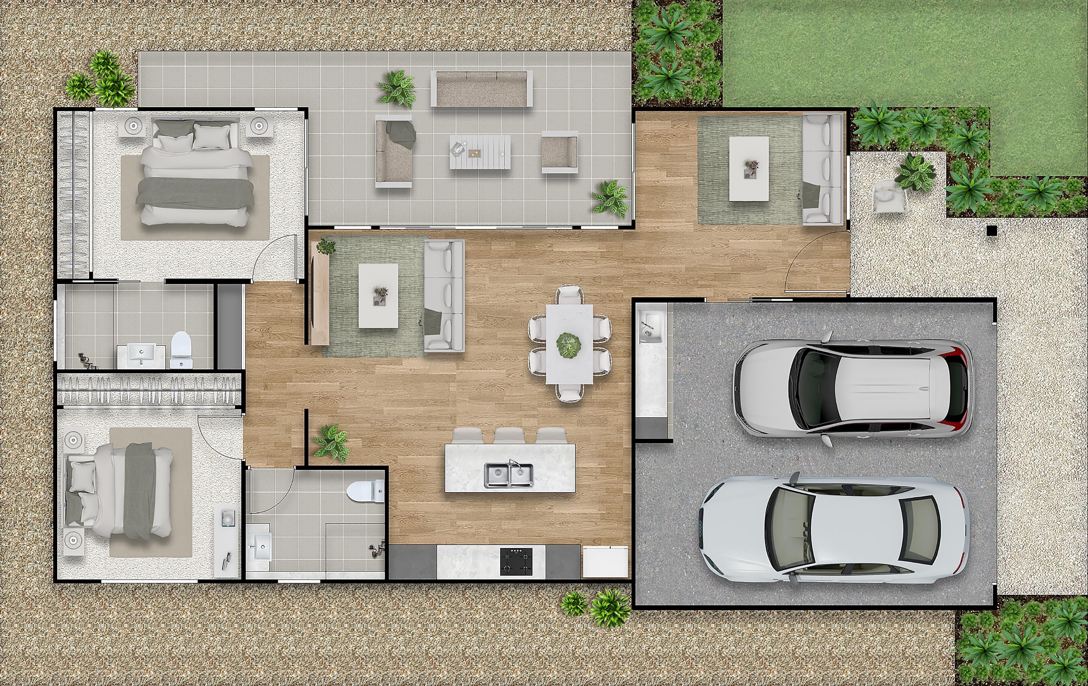 Two private bedrooms with built in robes, the main bedroom comes with an ensuite. The multi-purpose room is positioned at the front of the home and fit for a separate sitting area, home office or tv room.