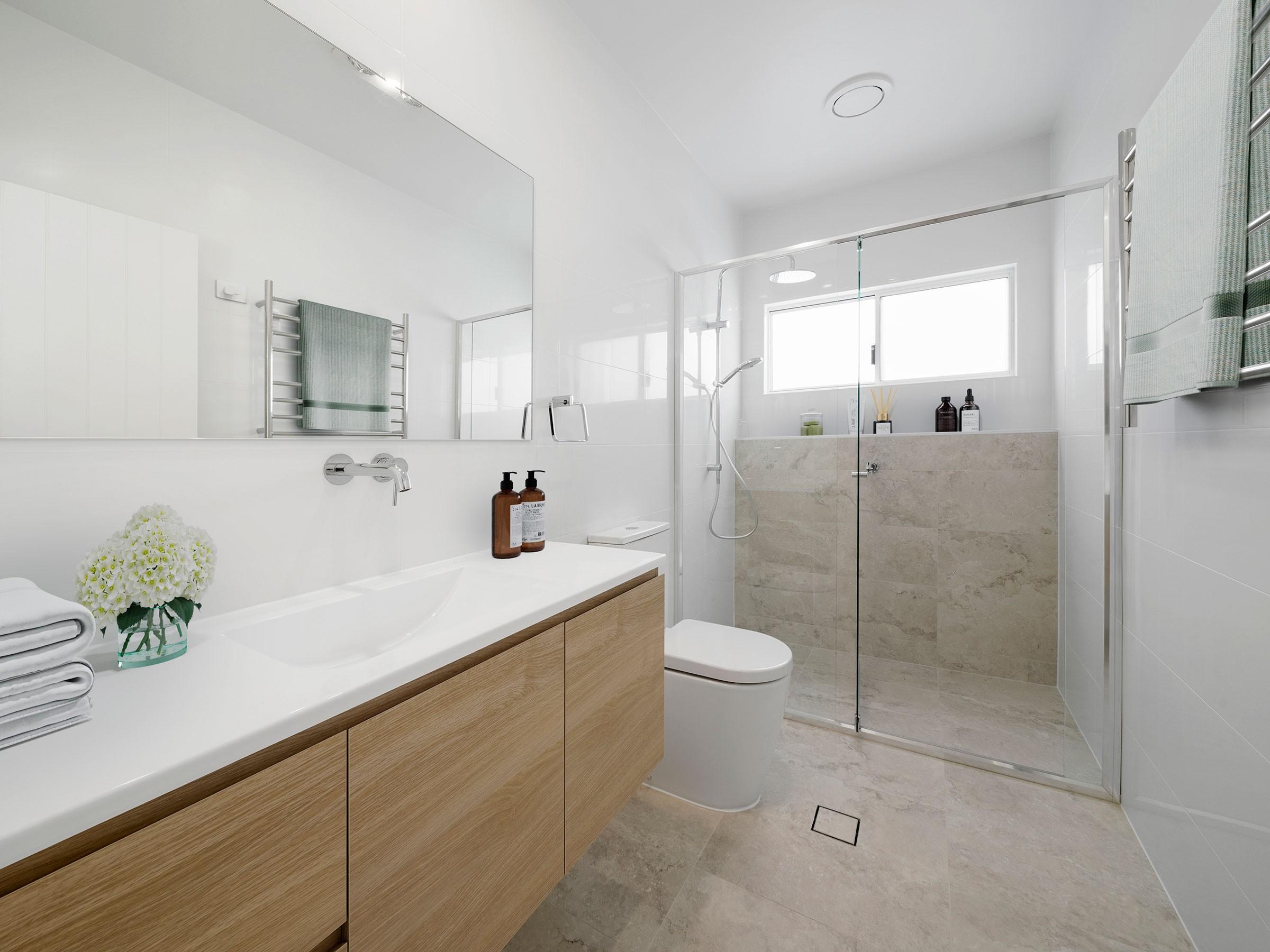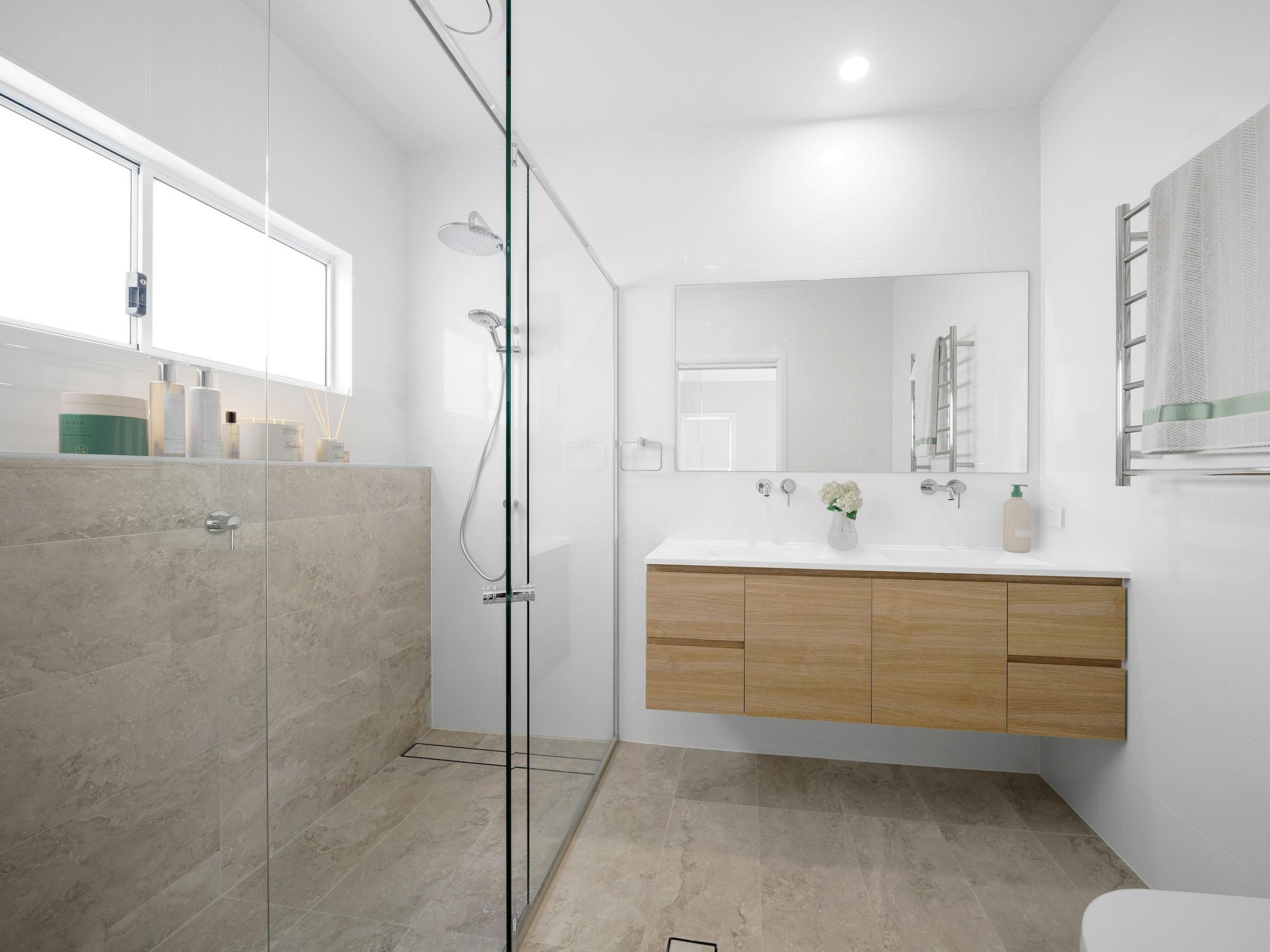 This home balances sophisticated finishes with practical flow; light-filled living areas invite laughter and conversation, while intimate bedroom retreats provide quiet and comfort. The master bedroom features an ensuite, built-in robes and access to the private courtyard, creating a sense of luxury and convenience. The double garage provides generous storage, laundry fitout and secure internal access, adding everyday ease to refined living. Both bathrooms are fitted with heated towel rails and under vanity sensor lighting.